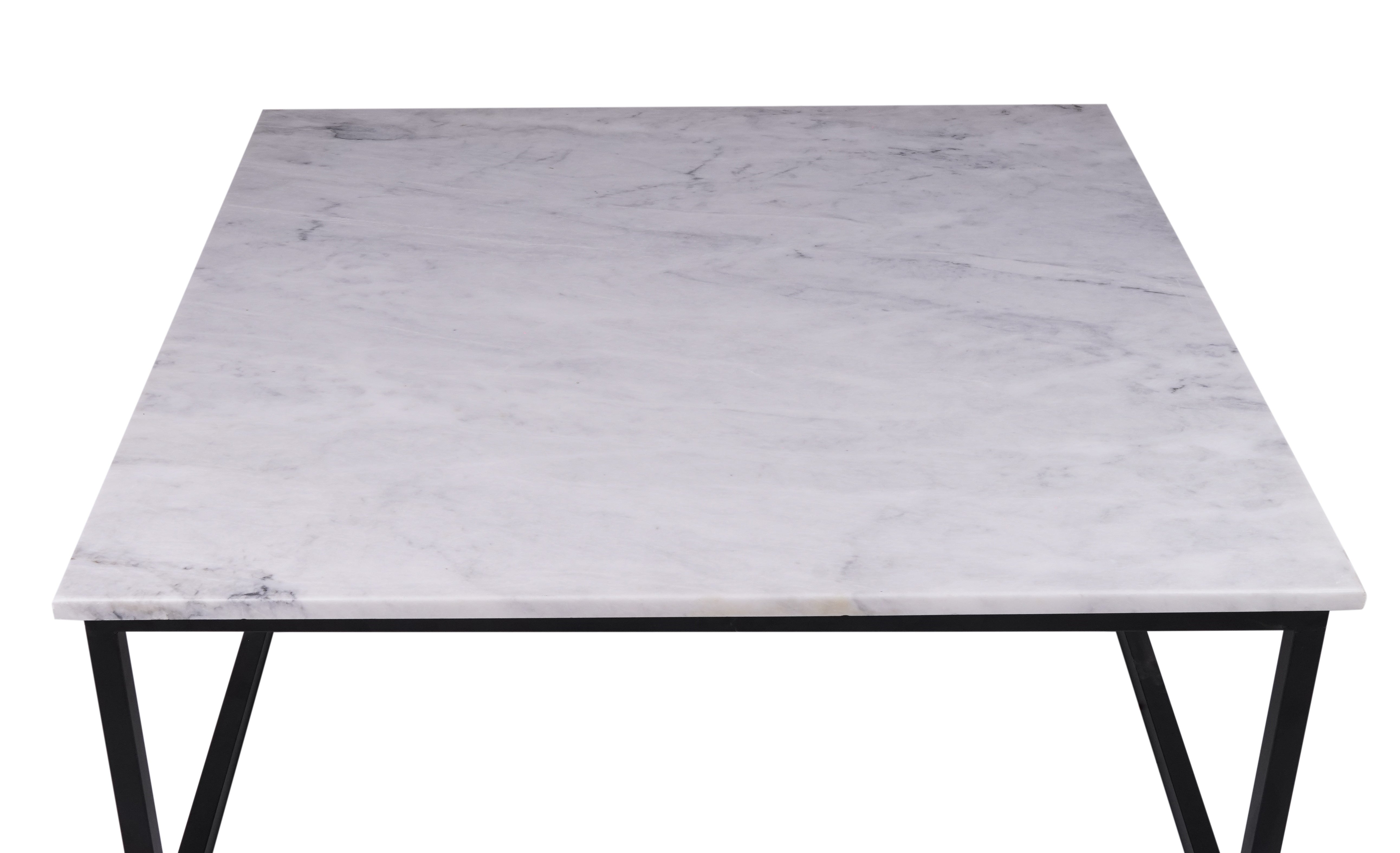 Carrara Marble Square Coffee Table with Elegant Wrought Iron Base – 100x100 cm