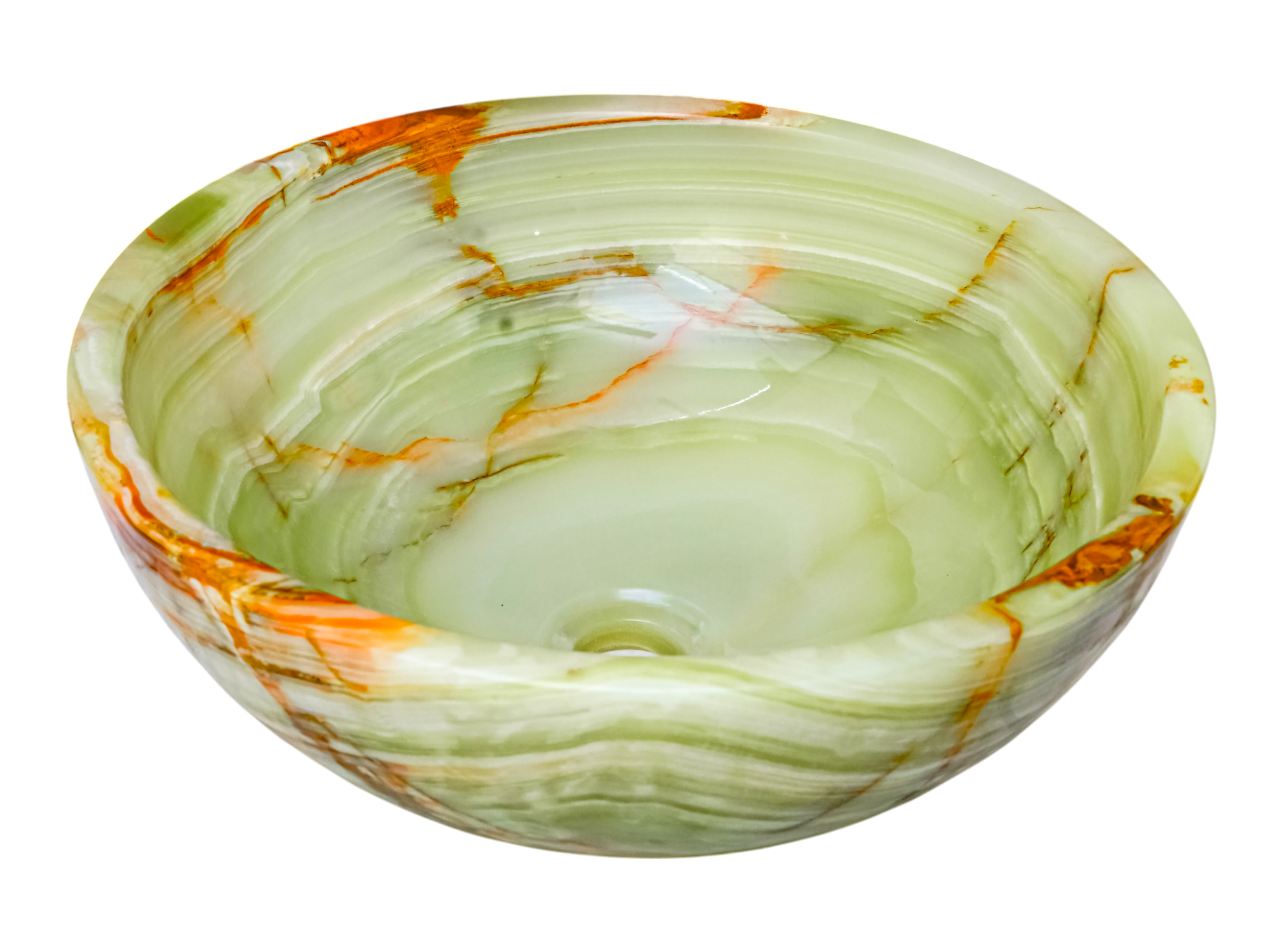 Make your bathroom a sanctuary with our Handmade Round Green Onyx Washbasin. This statement piece complements both modern and traditional decor, creating a luxurious spa-like atmosphere.